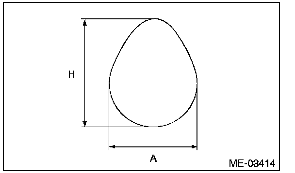 5) Measure the cam lobe height "H" and cam base circle diameter "A". If it exceeds the standard or offset wear occurs, replace it.