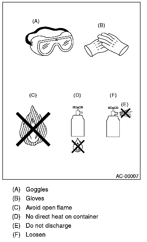 - When the engine is running, do not open the high-pressure valve of the manifold gauge. High-pressure gas can back-flow resulting in an explosion of the can.