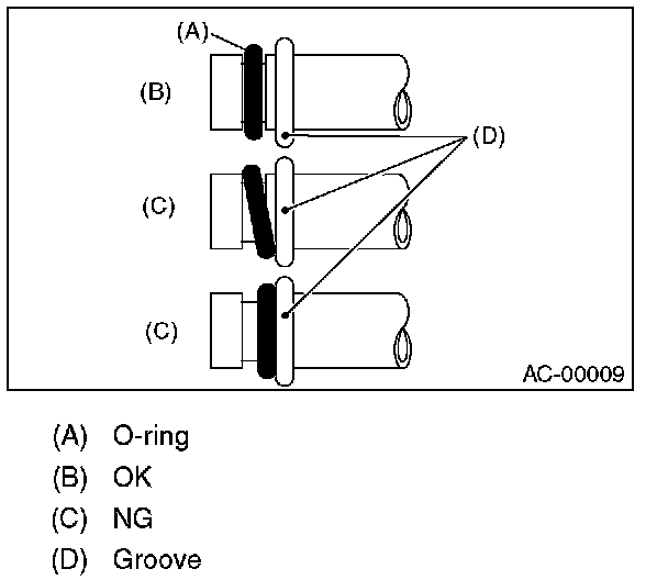 - Visually check the surfaces and mating surfaces of O-rings, threads and connecting points. If a failure is found, replace the applicable parts.