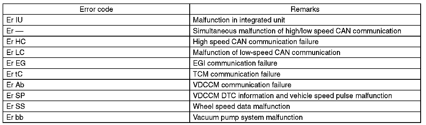 When the following error code is displayed in the odo/trip meter, inspect the communication circuit since the communication failure is generated between each control module. Basic Diagnostic Procedure