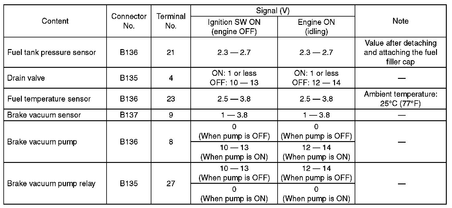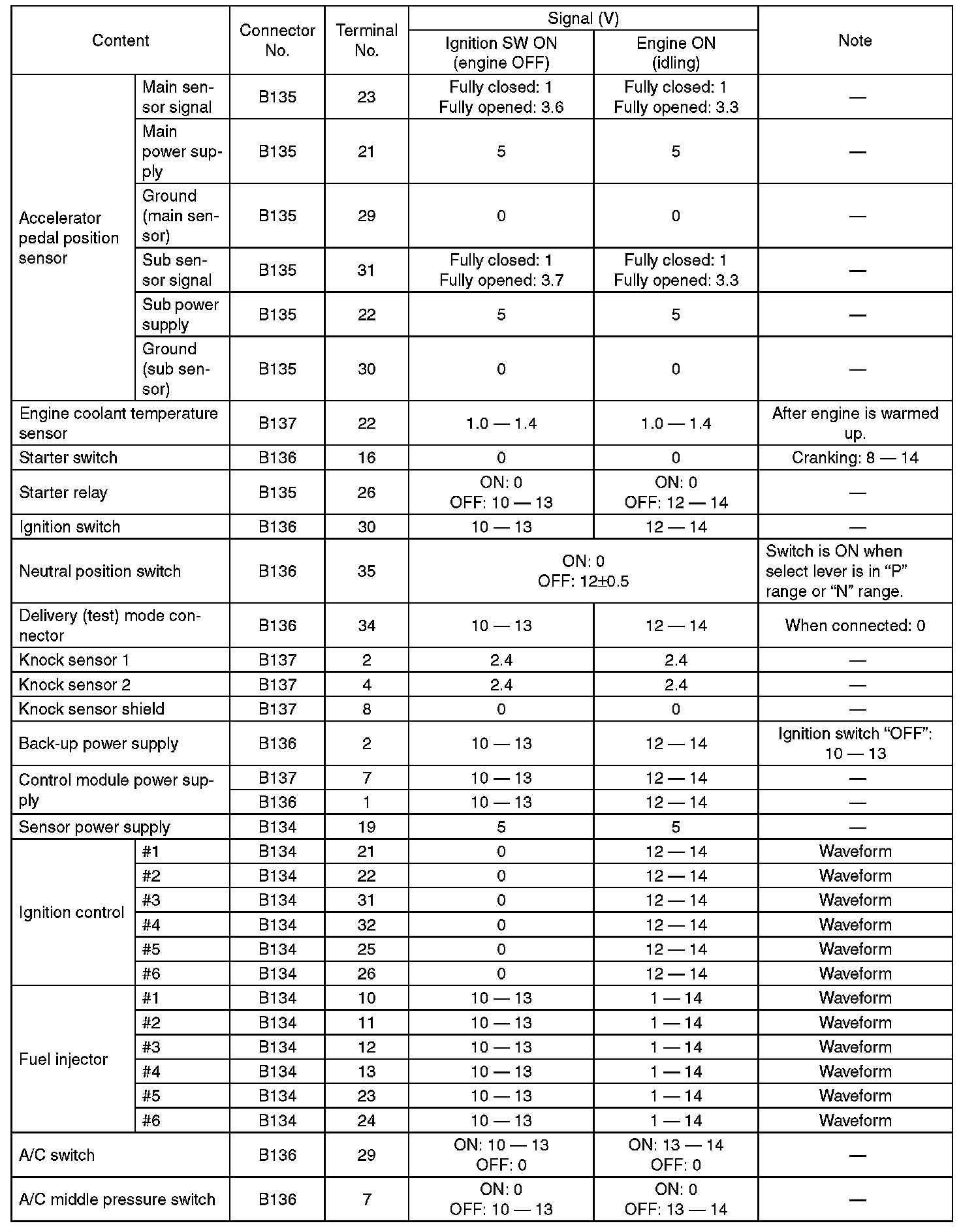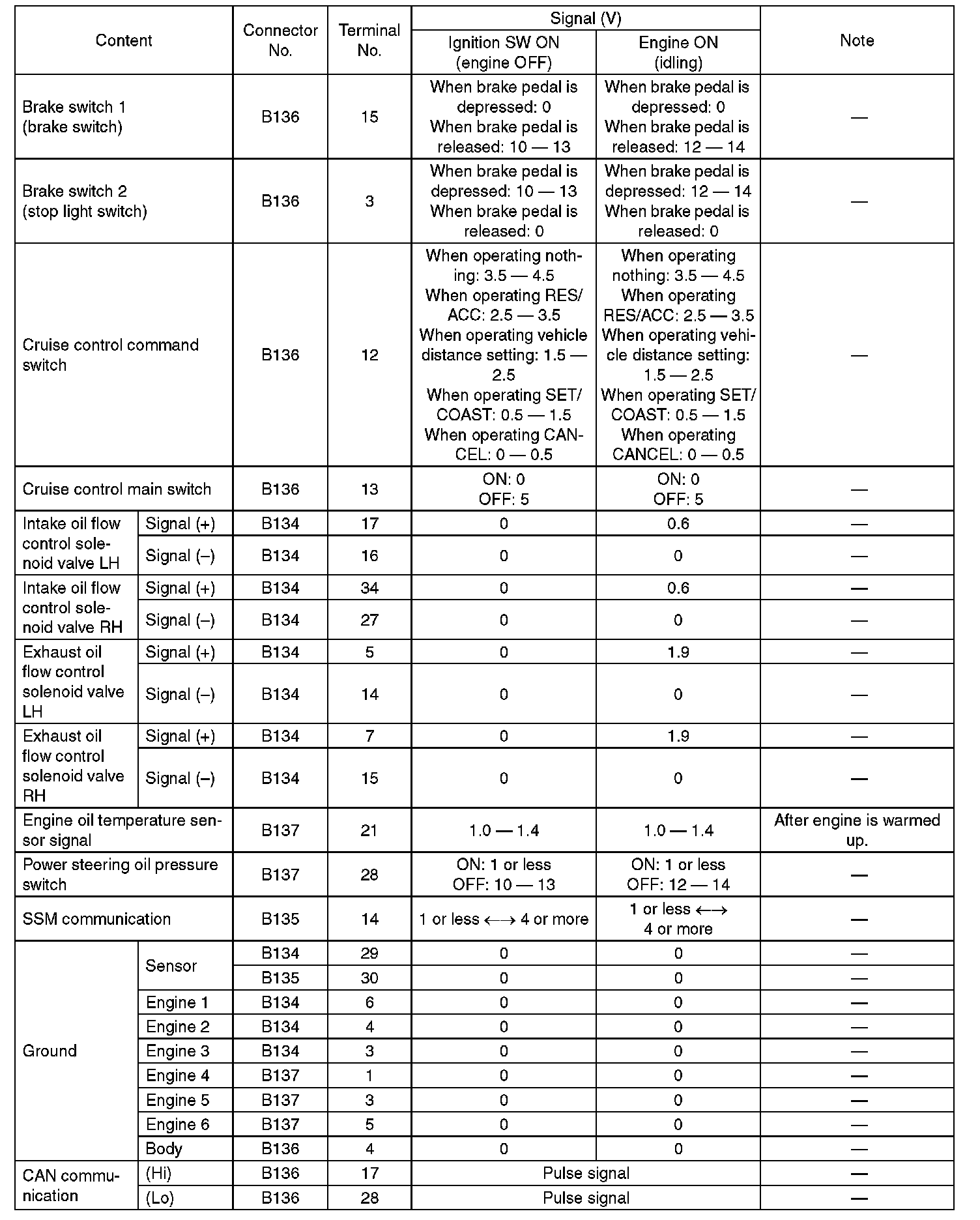 Pinout Values and Diagnostic Parameters