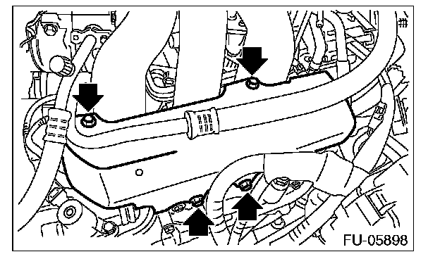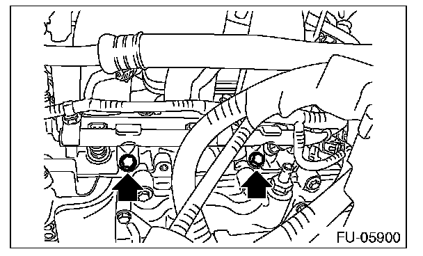 9. Remove the bolts which hold fuel injector pipe LH to cylinder head.