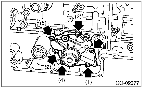 Tighten the bolts in the numerical order as shown in the figure, and install water pump to the