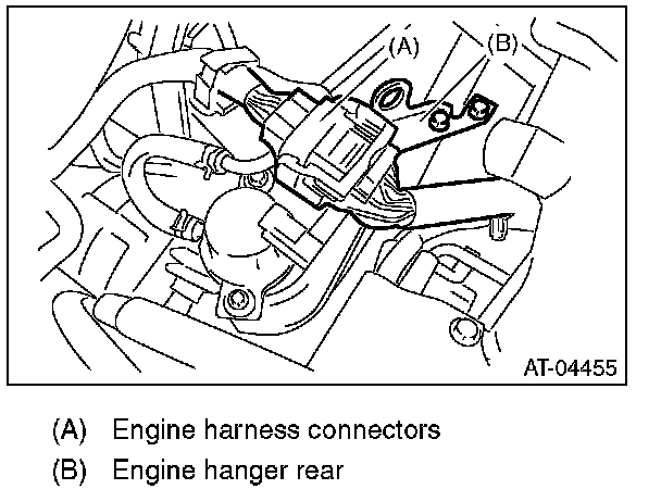 9) Disconnect the engine harness connectors, and then remove the engine hanger rear.