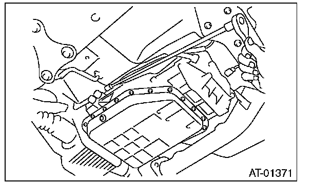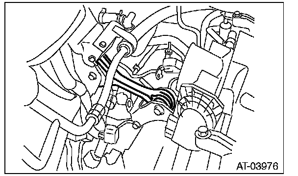 29) Disconnect the hose from the ATF inlet and outlet pipes.