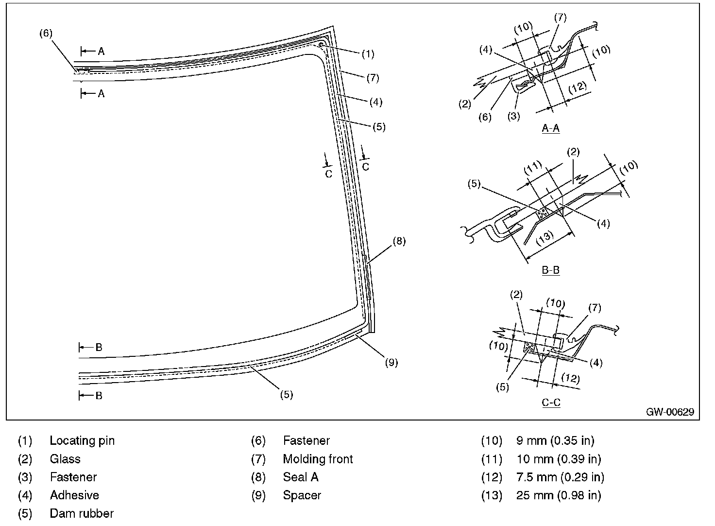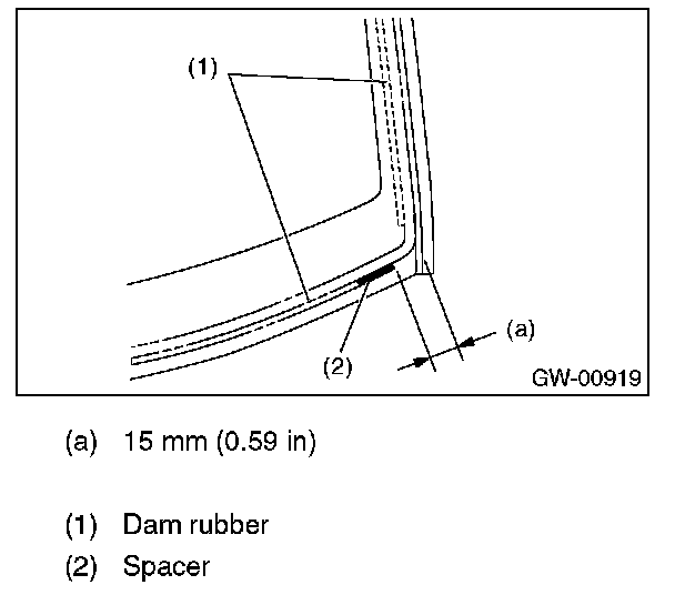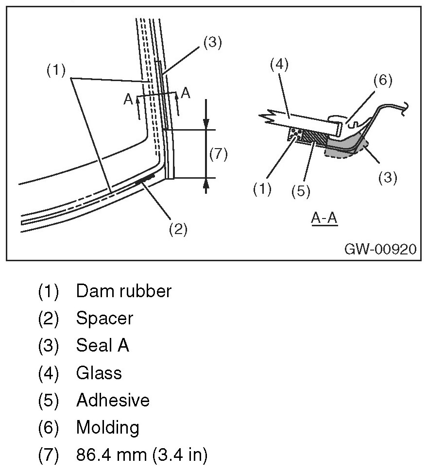 - For minimum drying time and vehicle standing time before driving after bonding, follow instructions or instruction manual from the adhesive manufacturer.