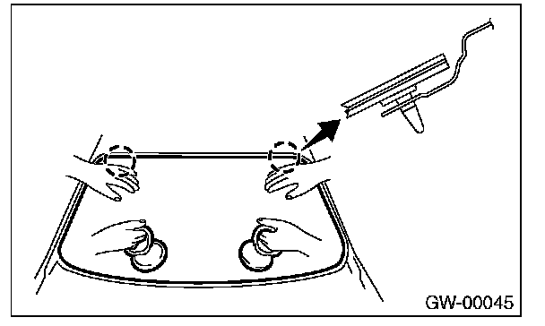 12. Fit the locating pins, and install windshield glass using suction rubber cup.