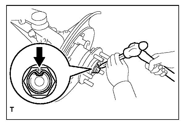 After the inspection of the rear axle hub and bearing ASSY LH play and runout, crimp the rear axle shaft nut LH.