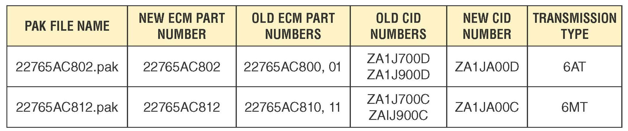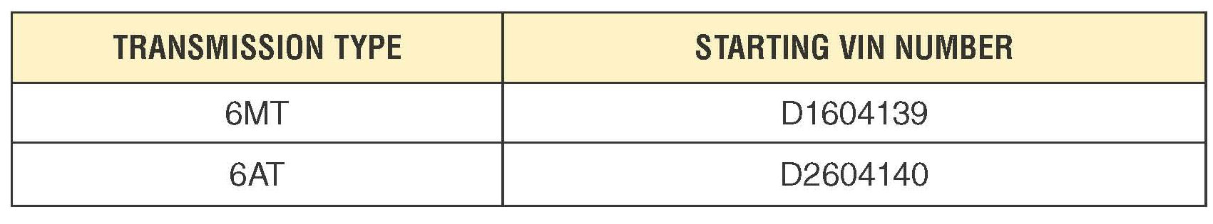 A change to the ECM logic was incorporated into production on September 12, 2012 starting with the VINs shown.