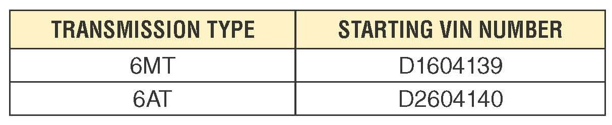 A countermeasure was incorporated into production on September 12, 2012 starting with the VINs shown.