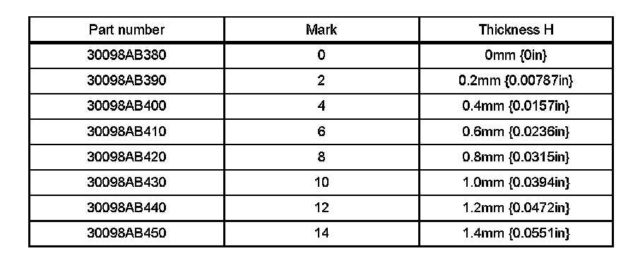 Normal clearance: 0.2 to 0.6 mm {0.00788 to 0.0236 in}