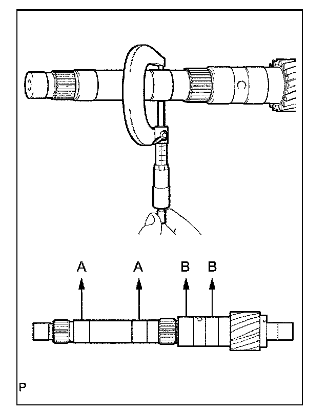 (2) Use a micrometer to check the outer diameters of the intermediate shaft at the positions shown in the figure.