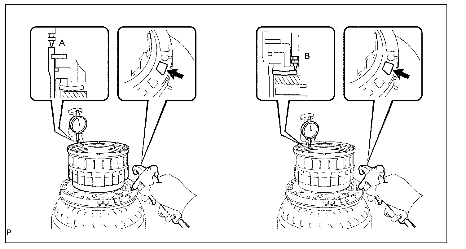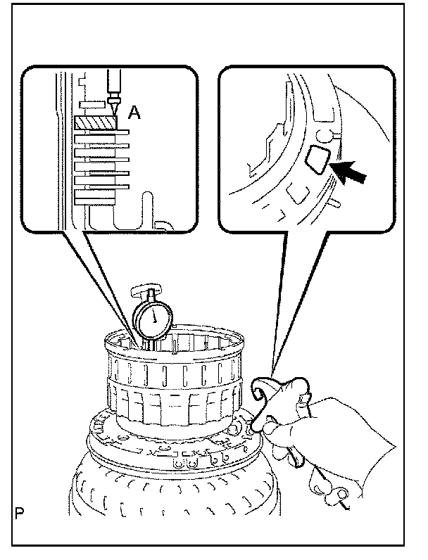 (1) Use a feeler gauge to measure the rear planetary gear pinion thrust clearance.