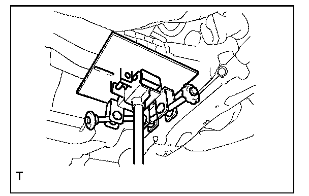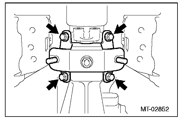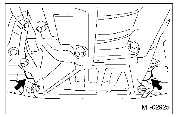 ^ Securely hold the engine ASSY to prevent it from tilting when removing the manual transmission ASSY.