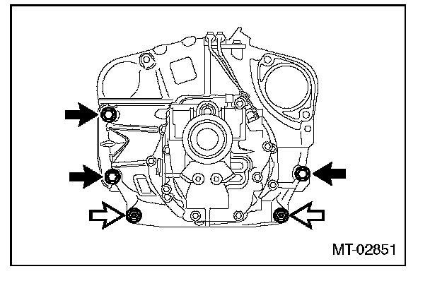 ^ To prevent damage to the knock pin, do not pry apart the contact surface of the manual transmission ASSY and the engine ASSY excessively.