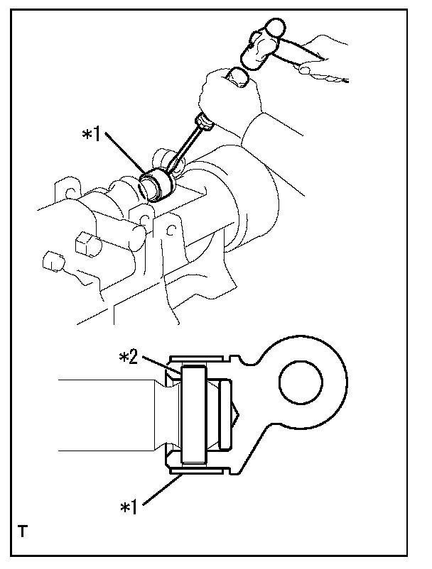 (2) After sliding the control shaft collar, press down the pin with the L shaped tool and push it up, then pull it out with pliers while applying a cloth to prevent damage to the pin.