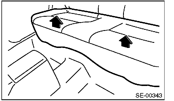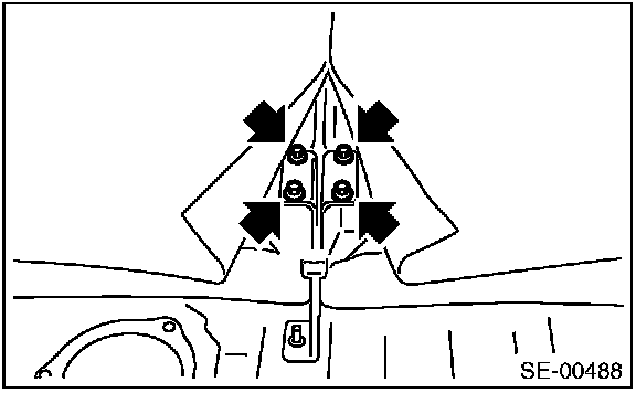 CAUTION: If the hooks on the vehicle body side is disengaged (remained on the seat cushion side) when removing the rear seat cushion, always replace with new hooks to prevent the decline of the fixed force of the seat.
