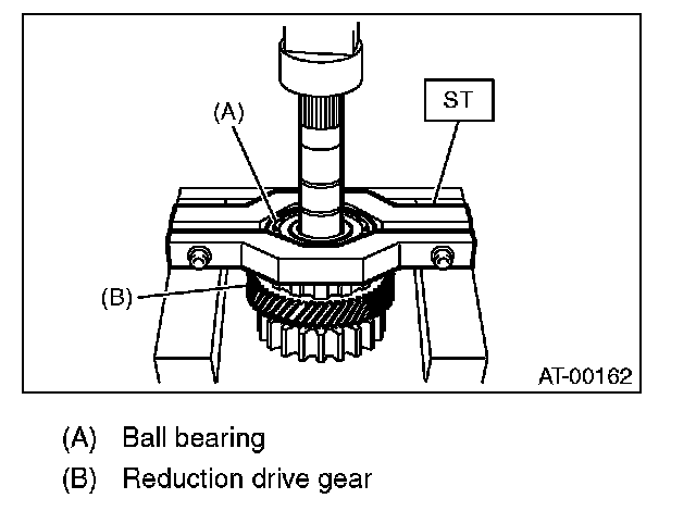 2) Remove the ball bearing from the reduction drive shaft using the ST.