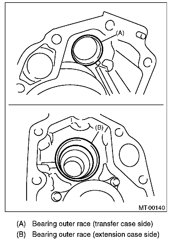 1) Install the bearing outer race to transfer case.