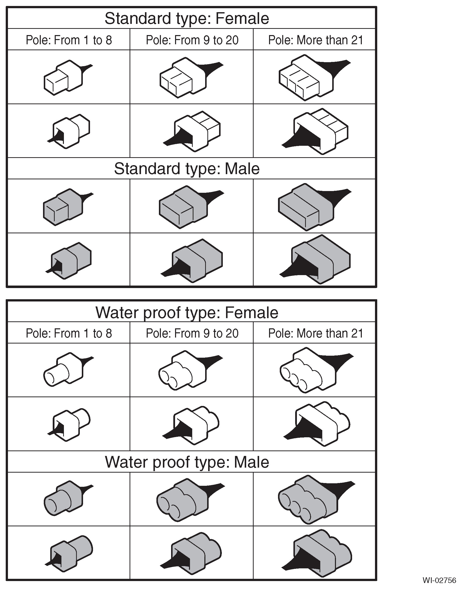 A number of connector symbols are used in each wiring diagram to easily identify the wiring harness connectors.