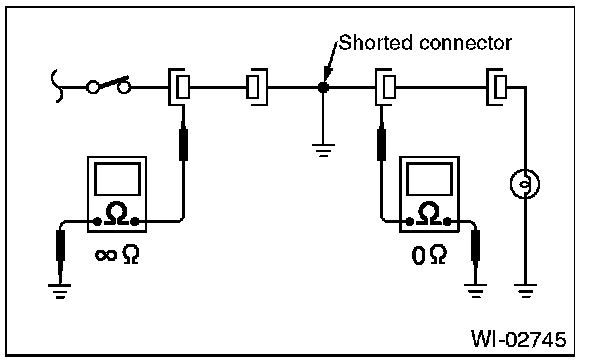 Disconnect all affected connectors, and check continuity between each connector and ground. When the ohmmeter indicates continuity between a particular connector and a ground, that connector is shorted.