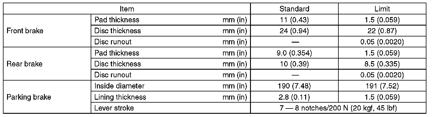 Refer to "PARKING BRAKE" for parking brake specifications.