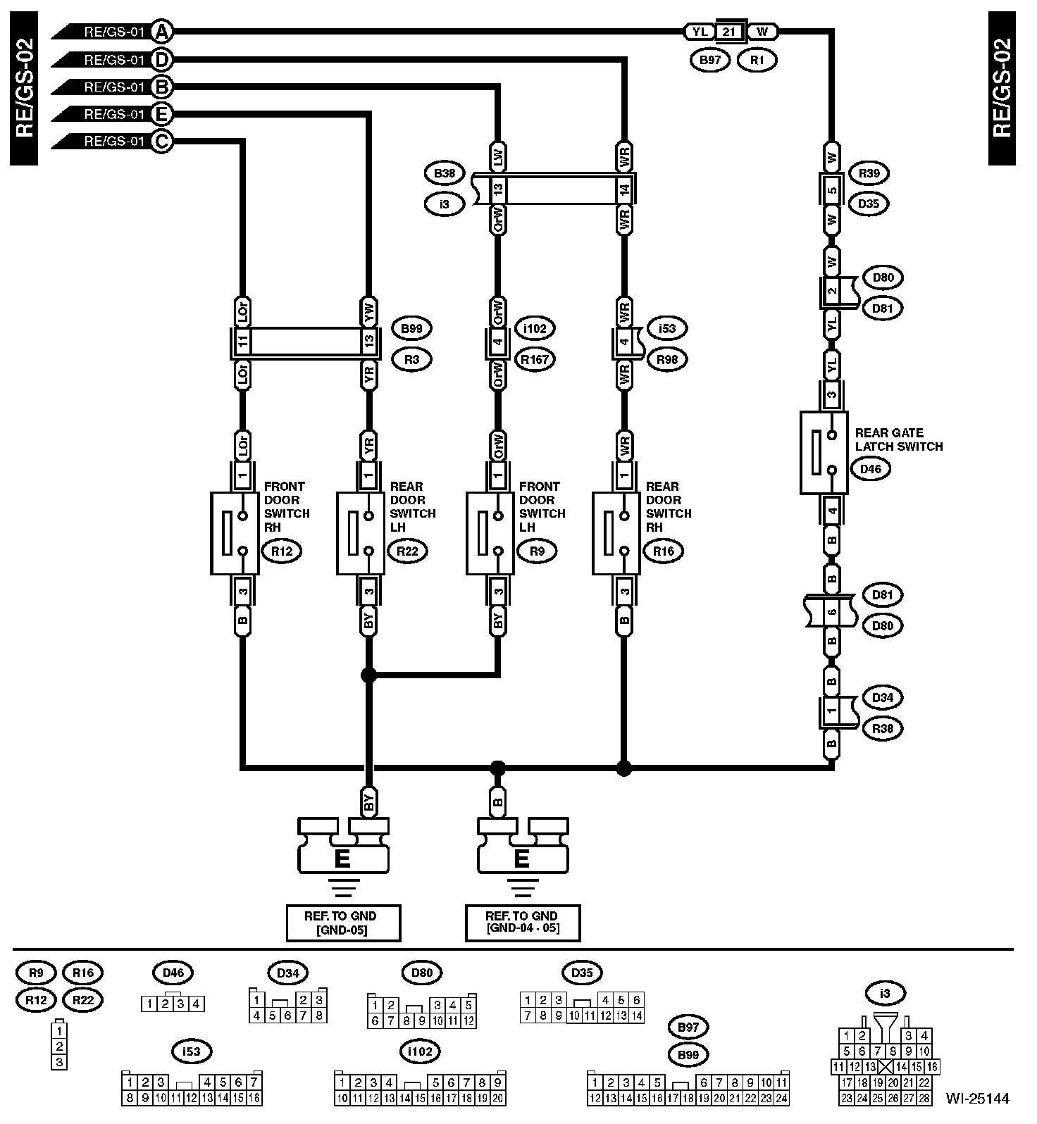 The locations of the Connectors or Grounds shown within these diagrams can be found via the connector or ground number at Vehicle Locations.