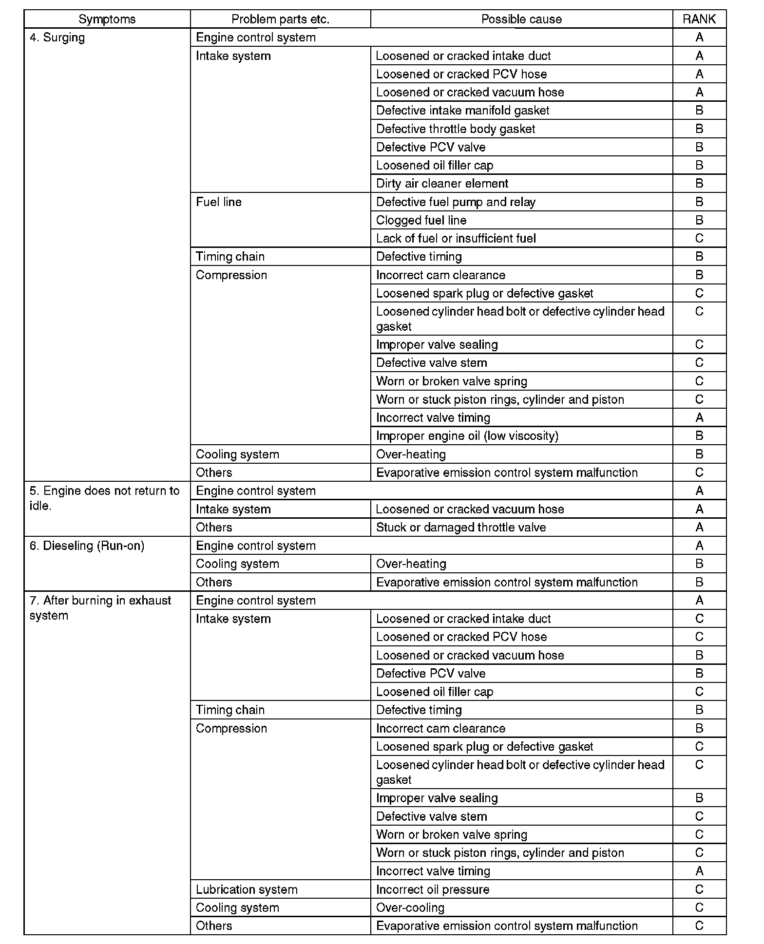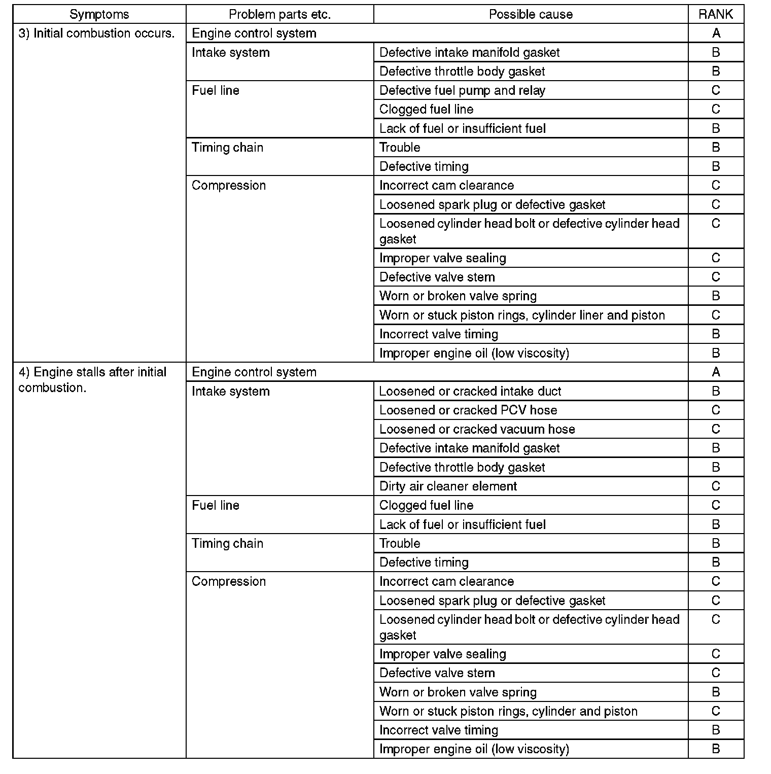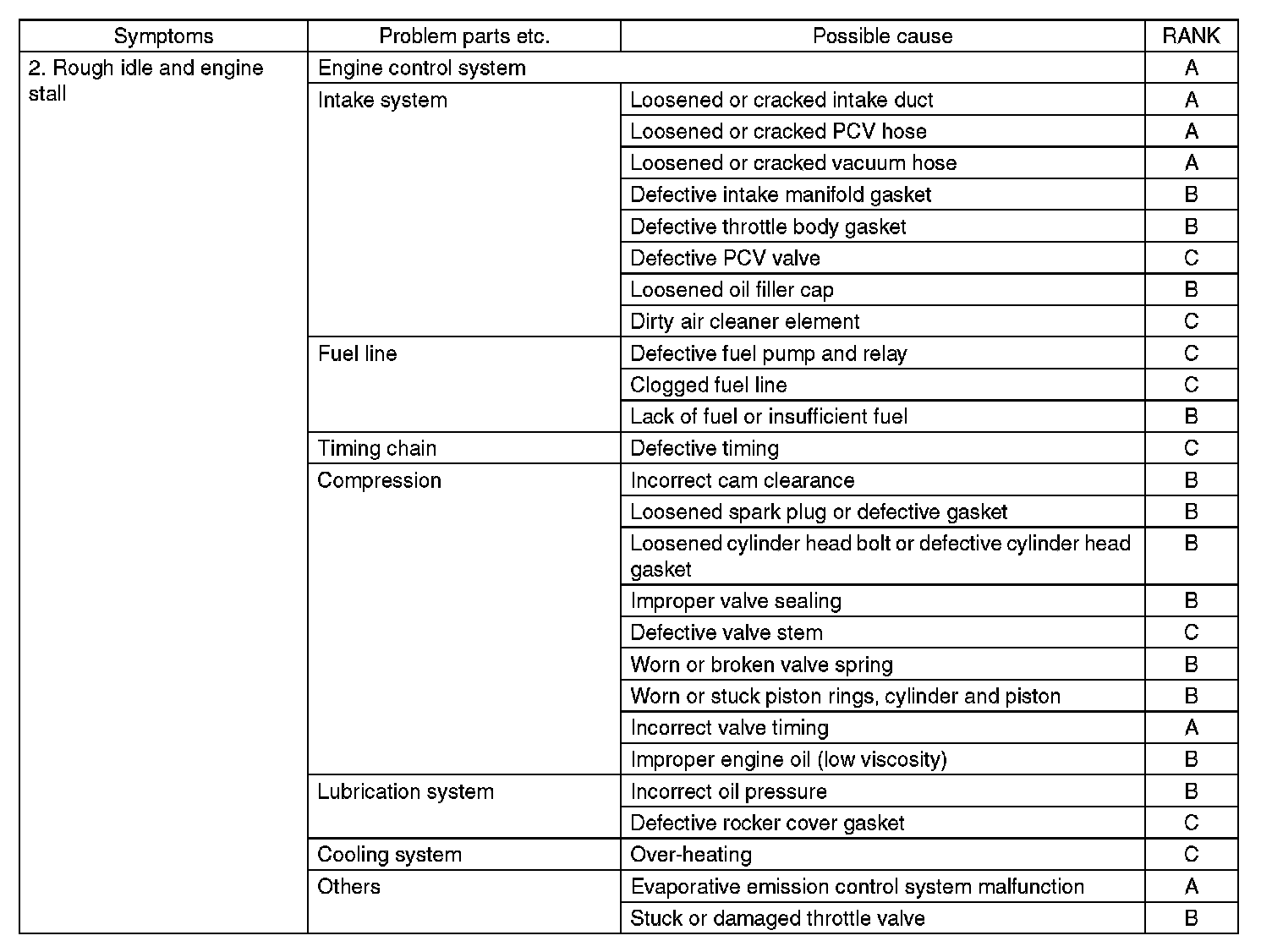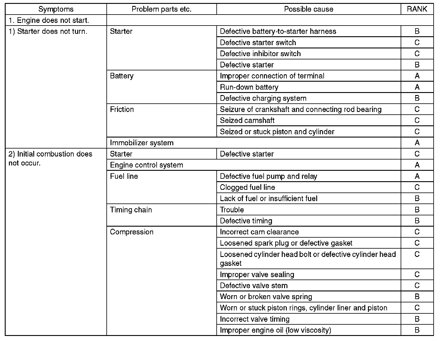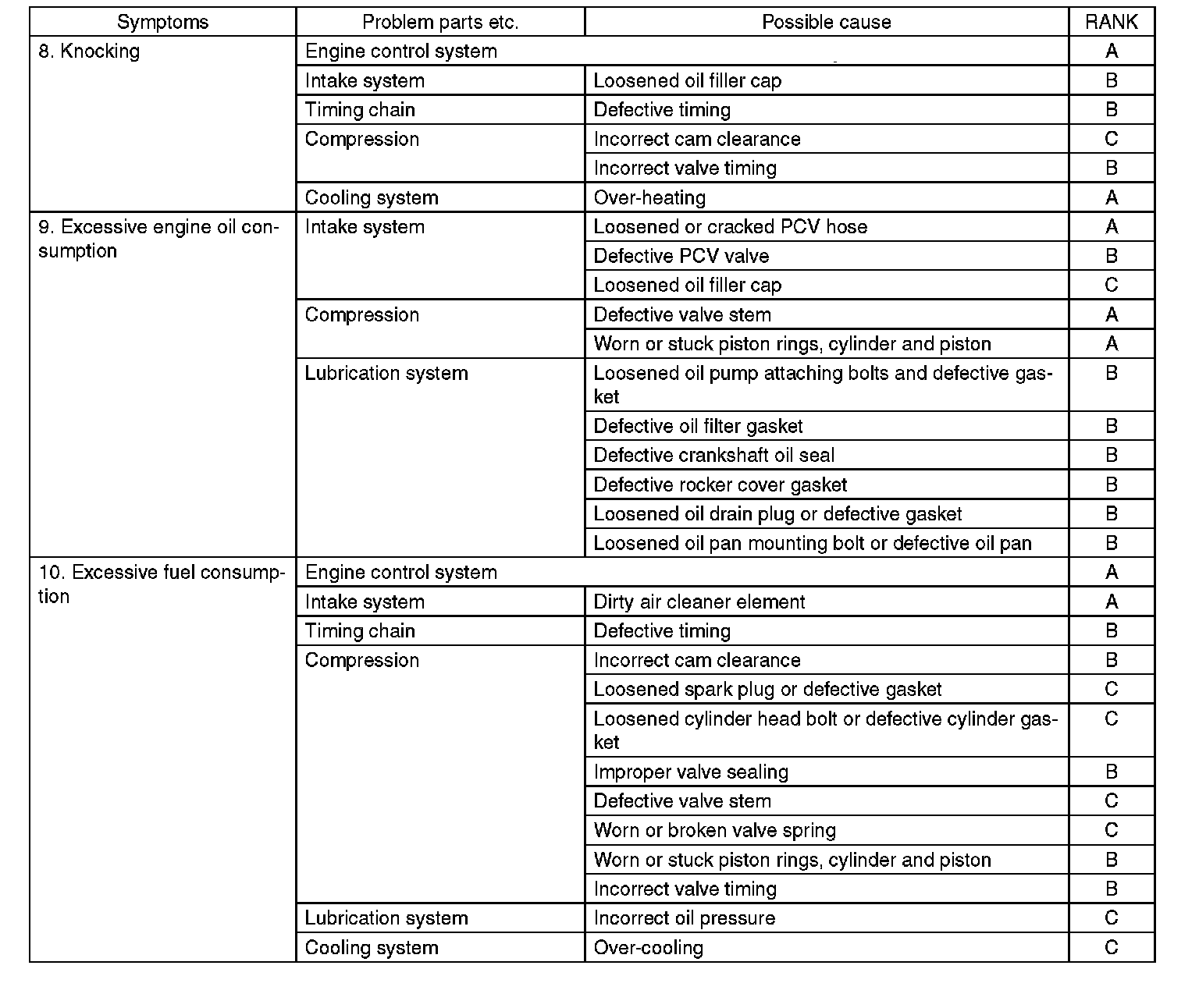 The "RANK" shown in the chart shows the possibilities of the cause of trouble in order from "Very often" to "Rarely".