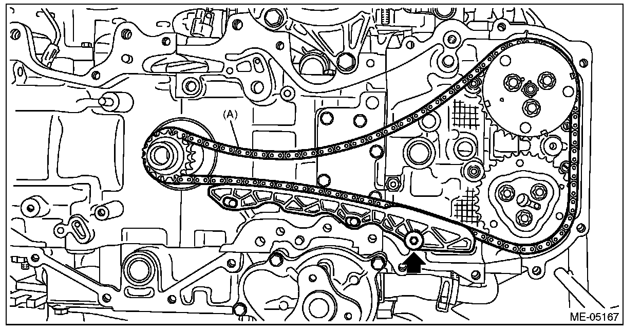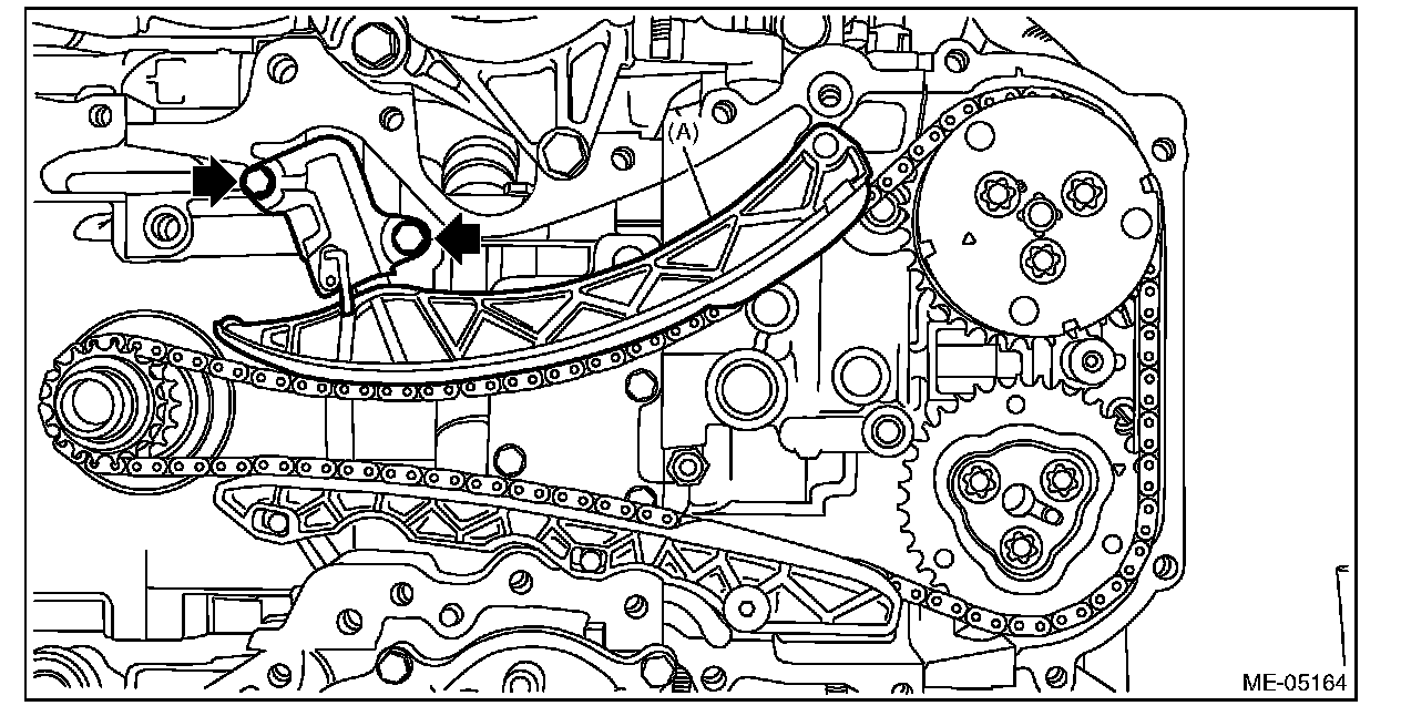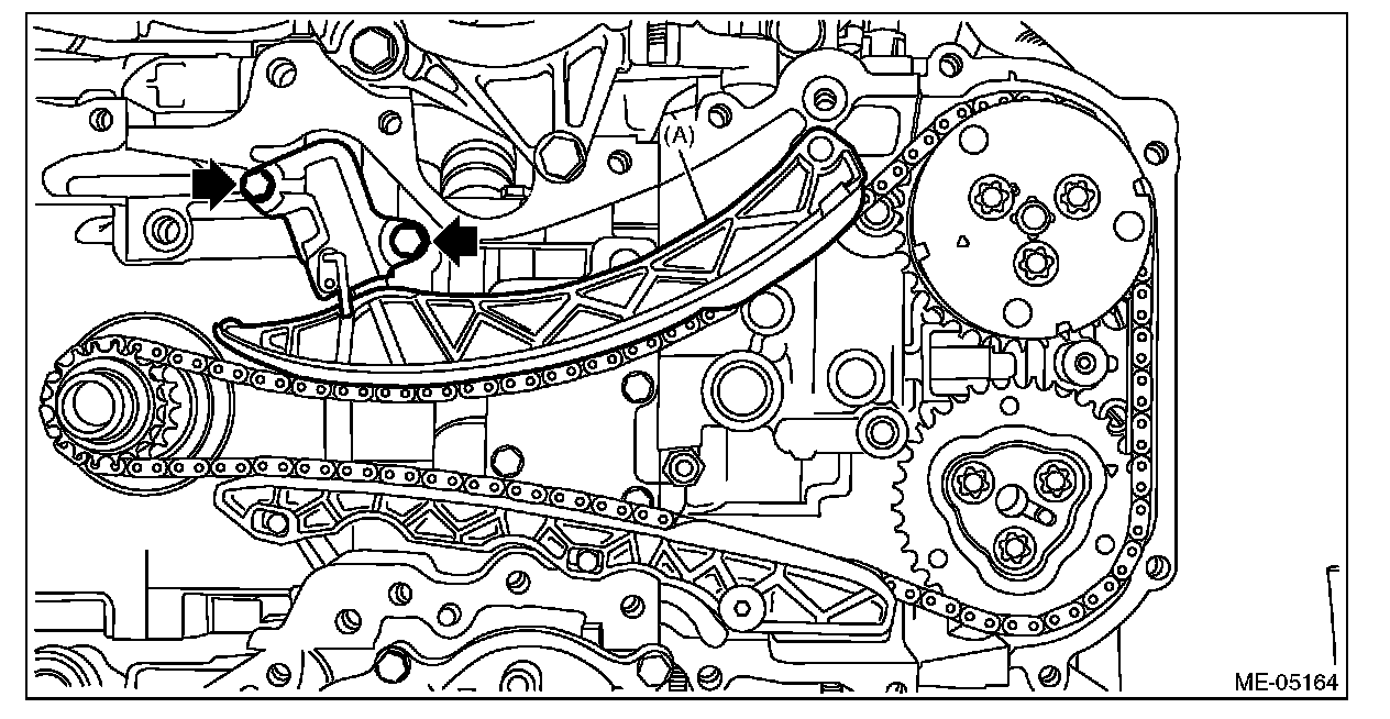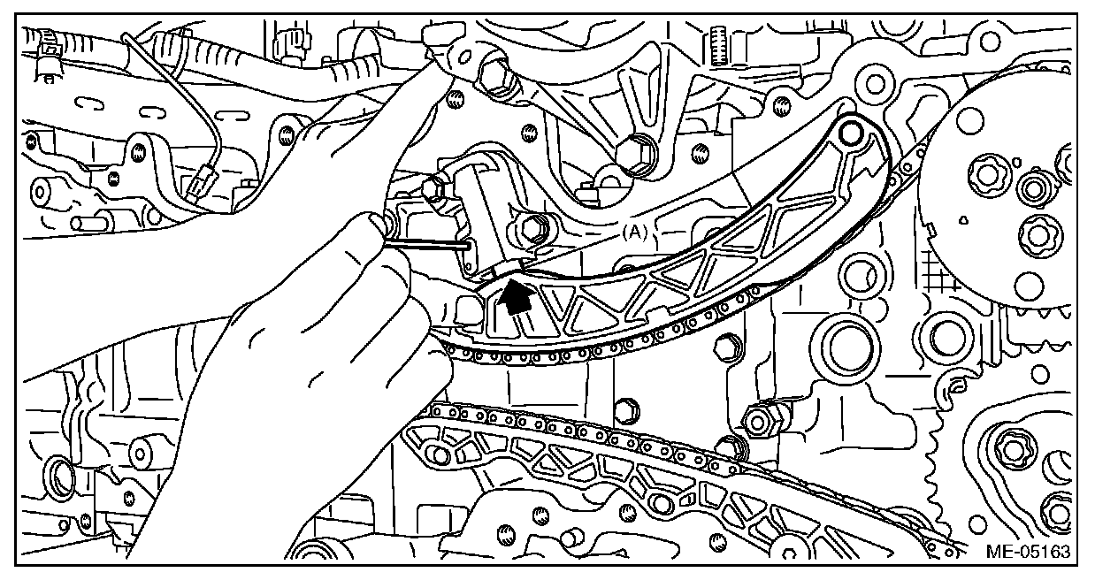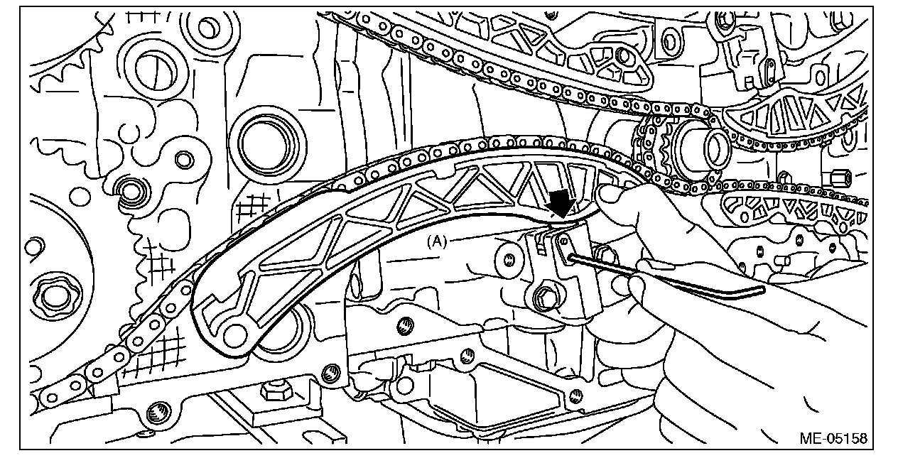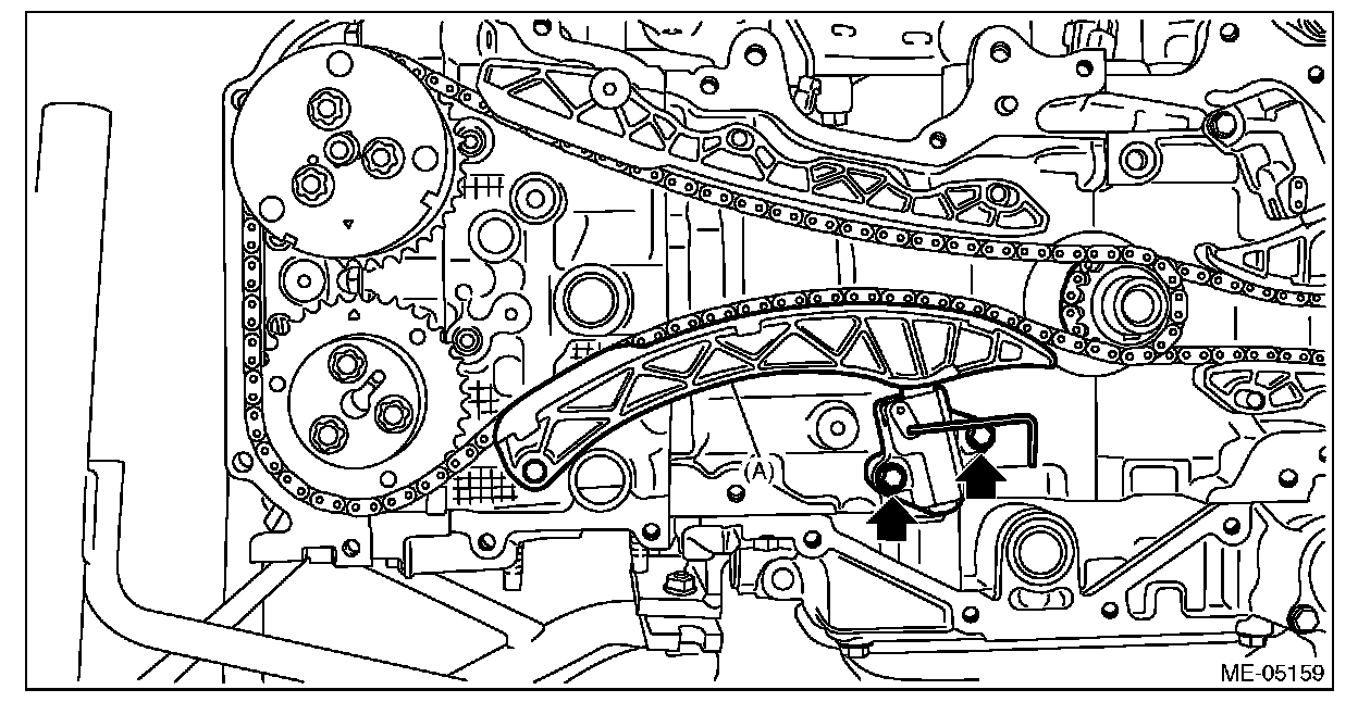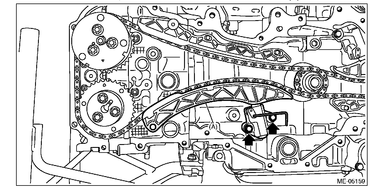 6) Remove the chain guide LH, and remove the timing chain LH (A).
