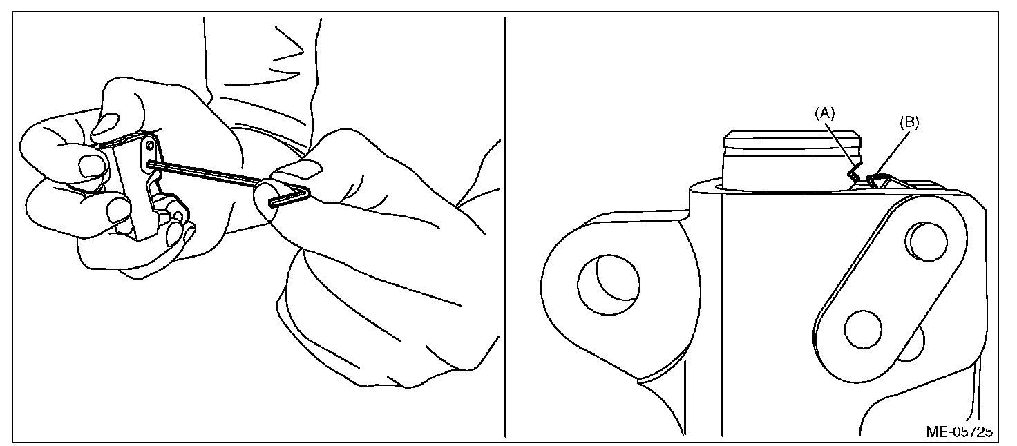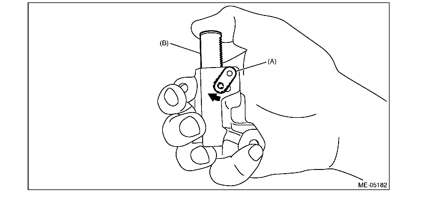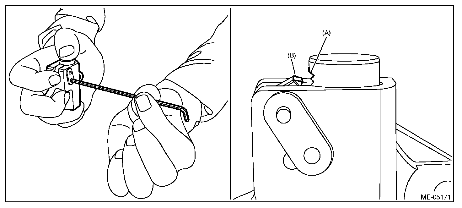 (1) Move the link plate (A) in the direction of arrow to press in the plunger (B).