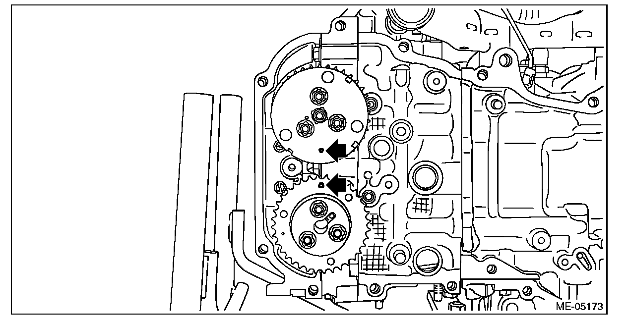 4) Align the alignment marks of intake cam sprocket RH and exhaust cam sprocket RH to the positions as shown in the figure.
