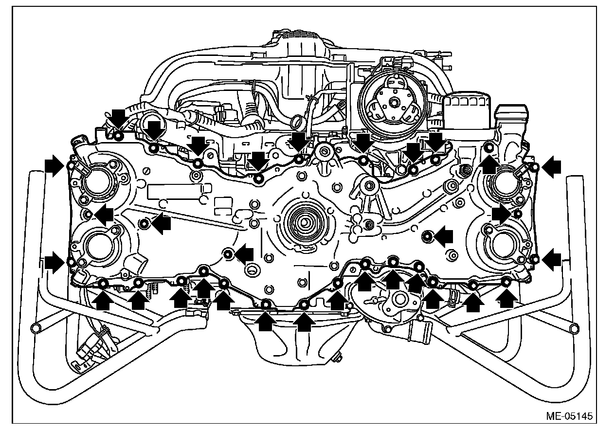 1) Install the O-rings to cylinder head RH, cylinder head LH, cylinder block LH and oil pan upper.