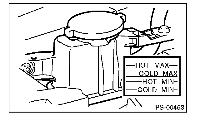 (1) Check at power steering fluid temperature 20°C (68°F); read the fluid level on the "COLD" side.