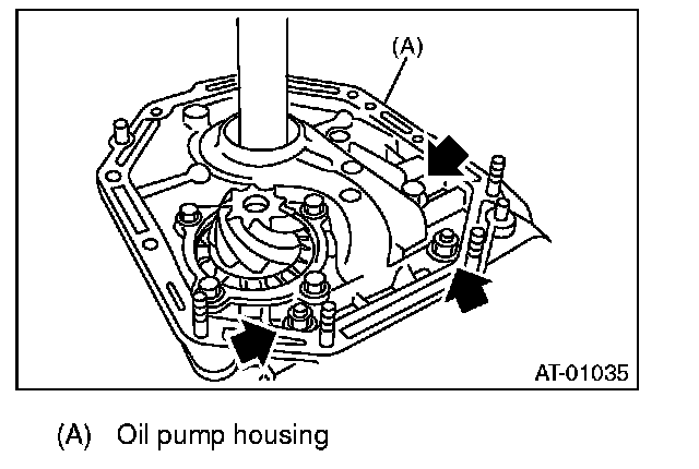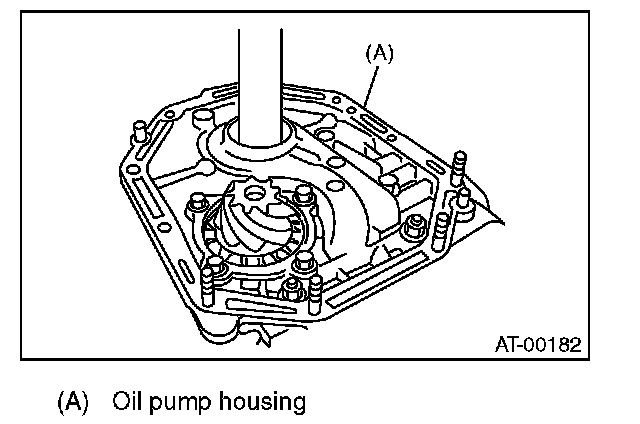 2) Apply ATF to the O-ring and attach it to the oil seal retainer. Install the seal to the oil pump housing bore.