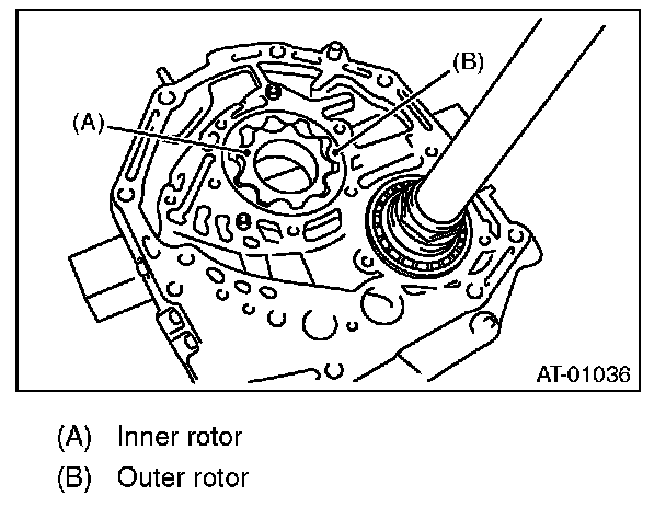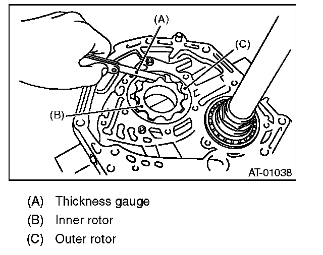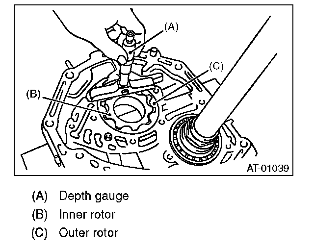 Set a depth gauge to oil pump housing, then measure the oil pump housing-to-rotor clearance.