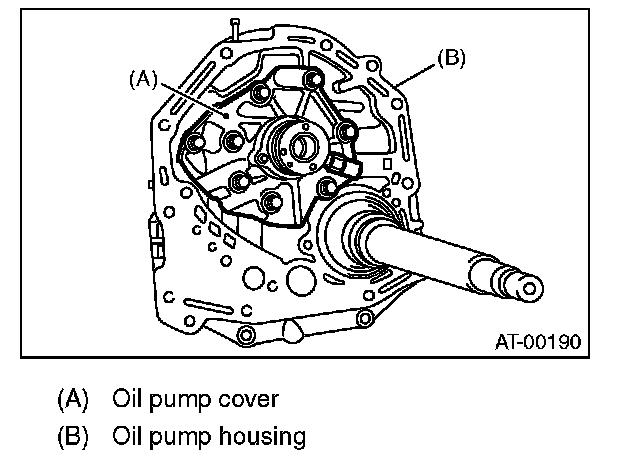 2) Remove attachment bolts, then remove the oil pump cover by lightly tapping the end of the stator shaft.