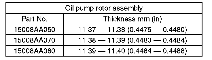 3) Oil pump rotor assembly selection