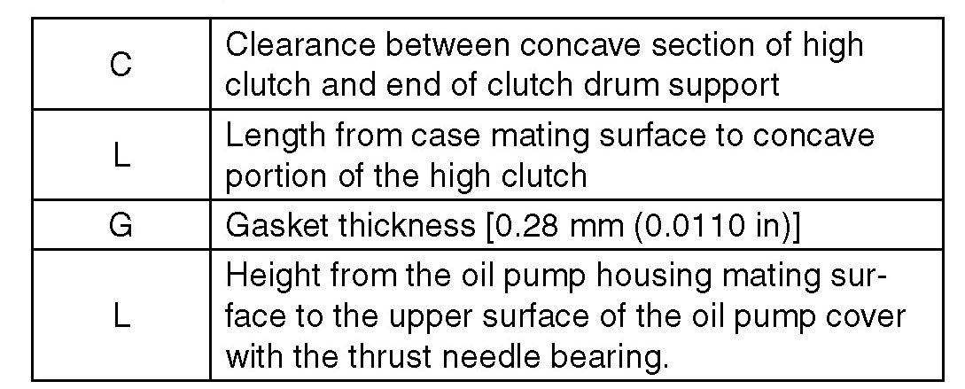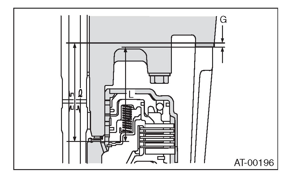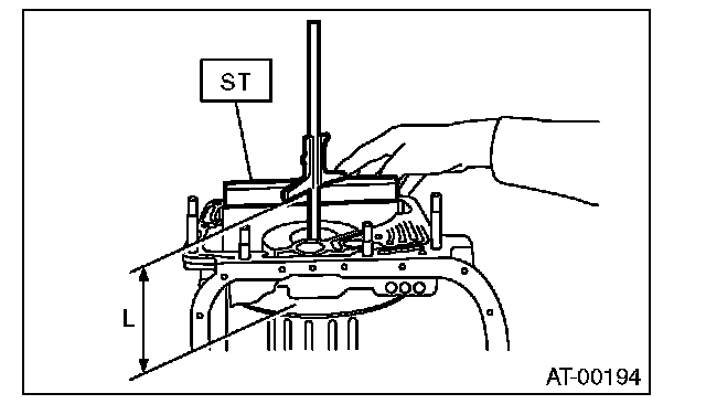 1) Using the ST, measure the length "L", from the mating surface of the transmission case to the recessed portion of the high clutch drum.