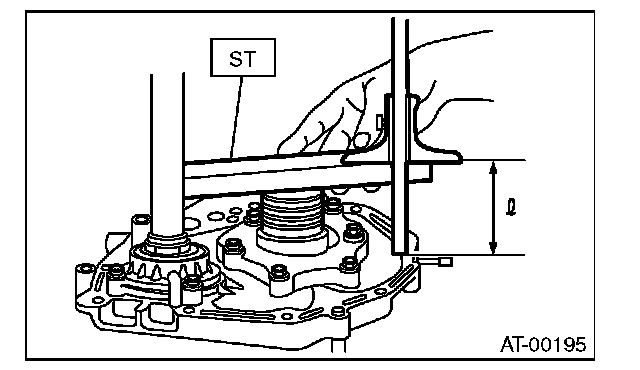 2) Using the ST, measure the length "L" from the oil pump housing mating surface to the top surface of the oil pump cover with the thrust needle bearing.
