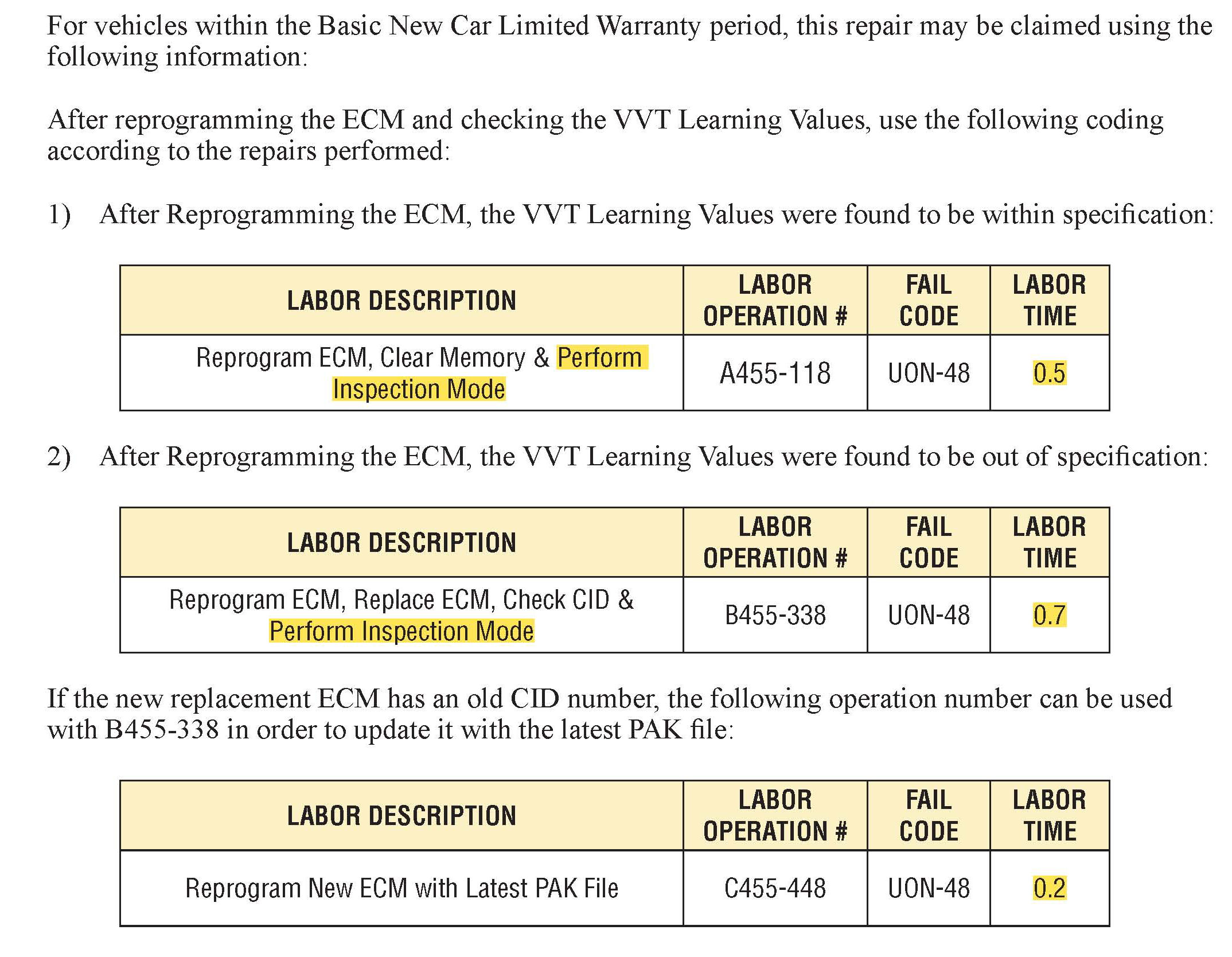 This Bulletin announces a diagnostic procedure and the availability of updated ECM reprogramming files to address DTCs P0017 and P0019. The diagnostic procedure is also applicable to DTCs P0016 and P0018.