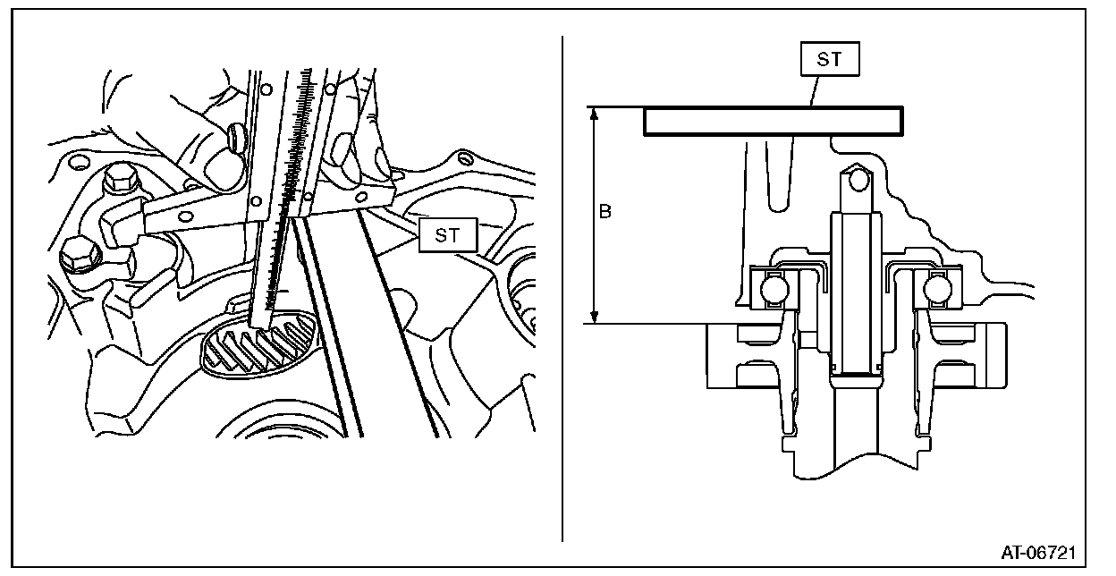 4) Measure depth "B" from the ST upper face to the reduction drive gear end face.
