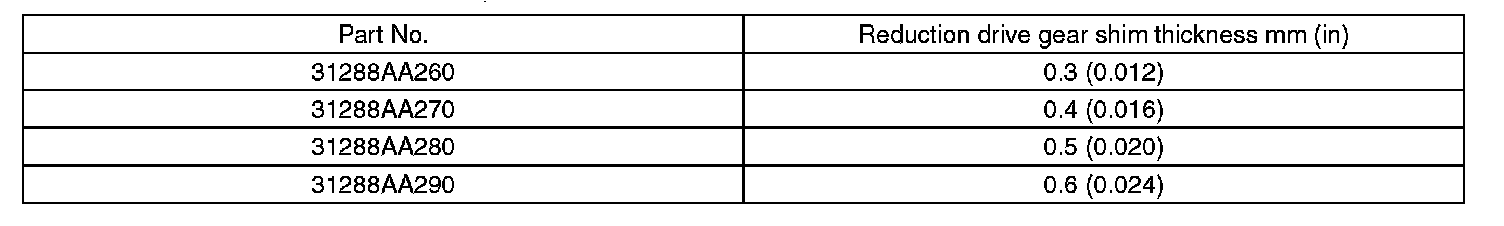 2) Select the reduction drive gear shim.