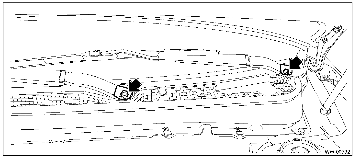 2. Remove the nuts, and remove the front wiper arm assembly.