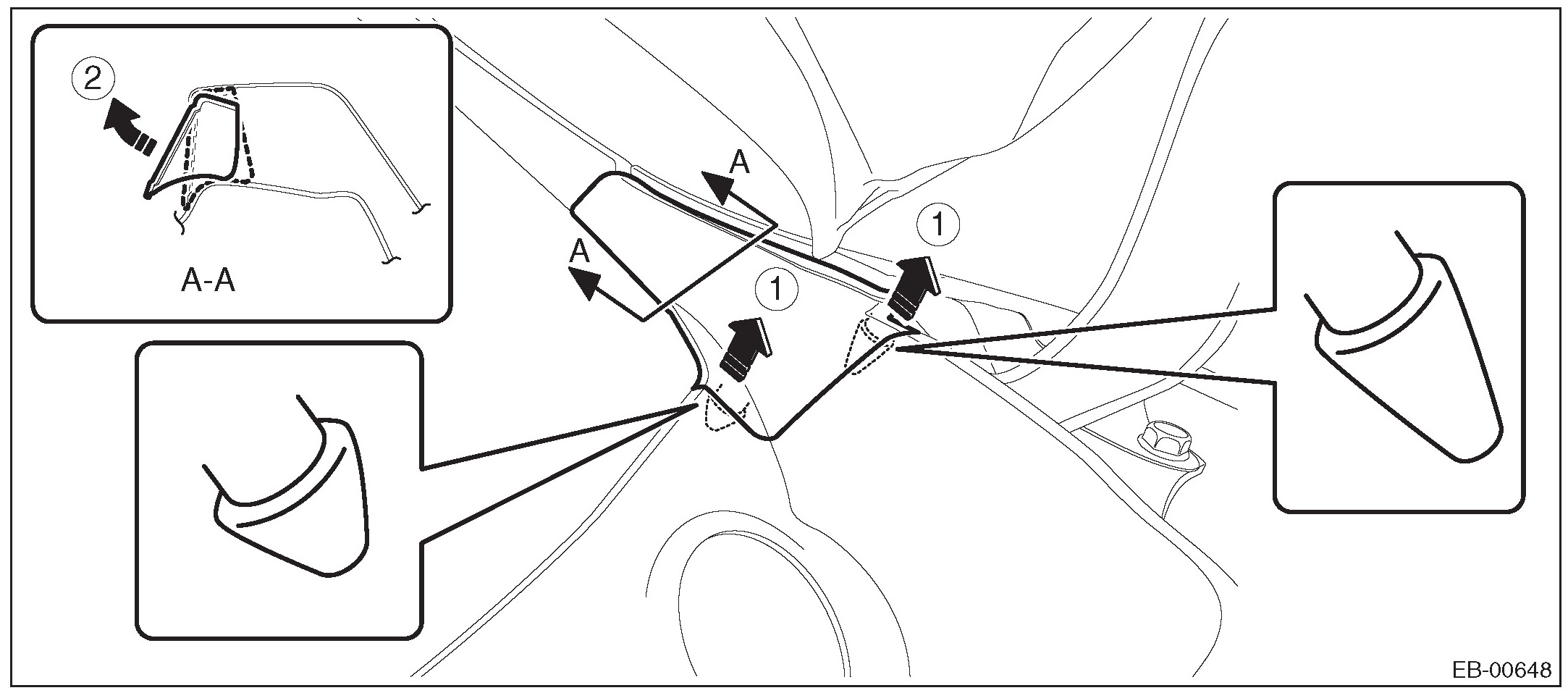 1. Remove clips (A).