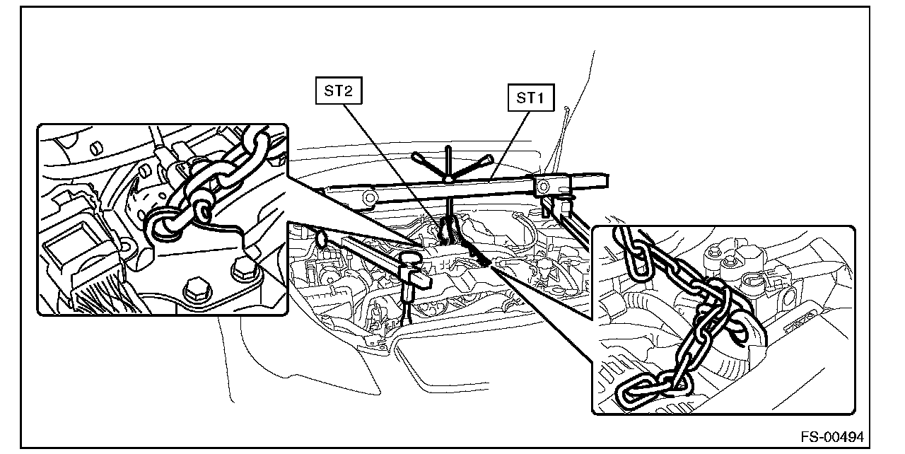 12) Suspend the engine using ST, chain sling, and shackle.