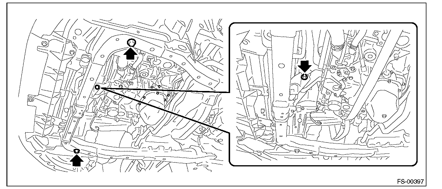 11) Replace the engine hanger installed on the engine with the SUBARU genuine engine hanger (H4 nonturbo model) or ST (H6 model).