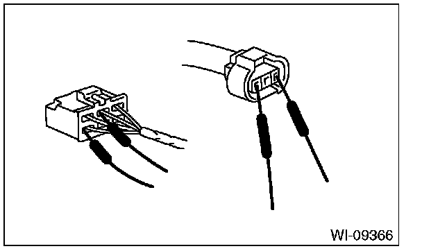 6. When checking continuity between connector terminals, or measuring voltage across the terminal and ground, always contact tester probe(s) on terminals from the wiring connection side. If the probe is too thick to gain access to the terminal, use "mini" test leads.