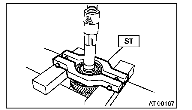 2) Remove the ball bearing using the ST and the press.
