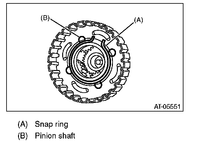 3) Remove the snap ring, and pull out the pinion shaft from center differential assembly.