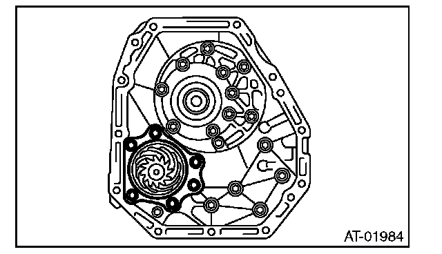 3) Install the converter case to oil pump cover, and secure them with tightening four bolts evenly.